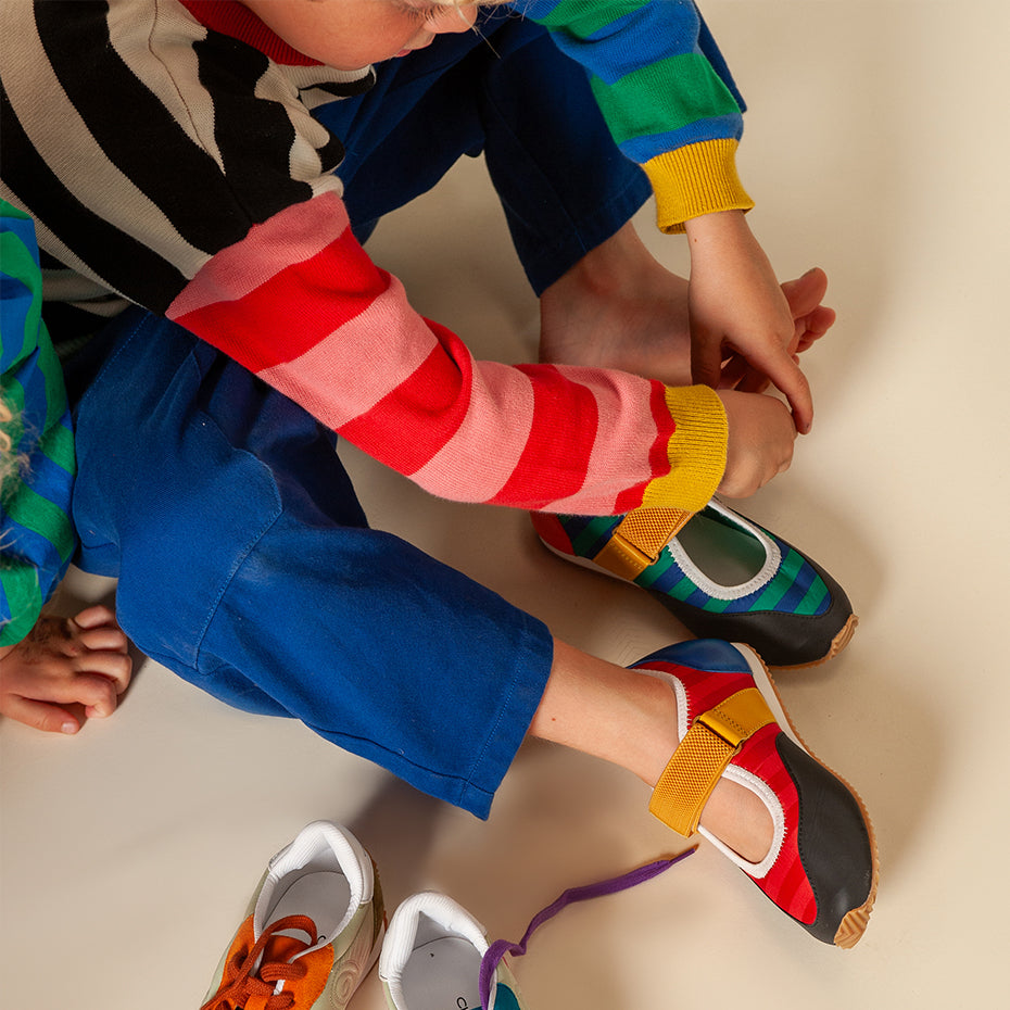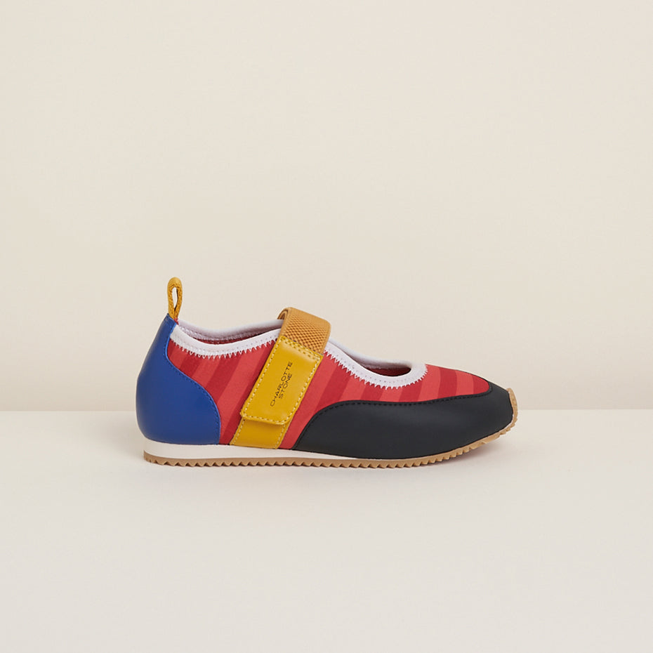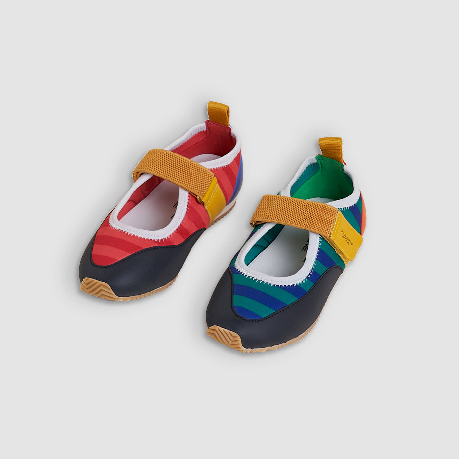 These shoes are part slipper, part sneaker. A sporty silhouette packed with comfort features: sport mesh and leather uppers, flexible woven elastic velcro closure, rubber wrapped toe, arch support memory foam insoles. Multitasking suddenly seems effortless.