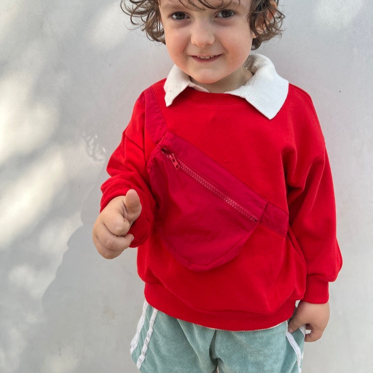 Pack it up, pack it in, all the toys jump in. This super-soft sweatshirt has an attached belt bag pouch that zips open to fit any number of small essentials. Pro-tip: Check the zipper pocket for crayons and snacks before washing.