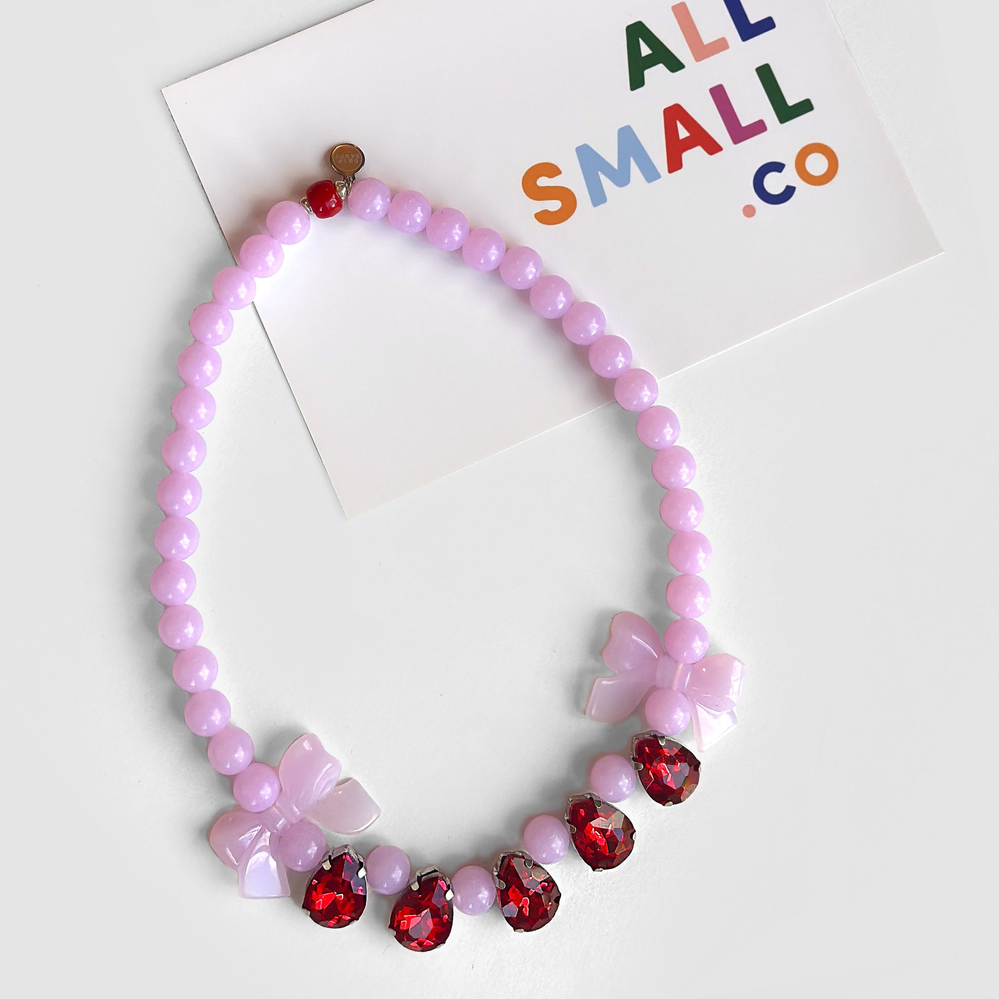 For babies first grand gala, or just a casual day at school. Necklace ships in an adorable little box with an iridescent backing for prime gift-ability.