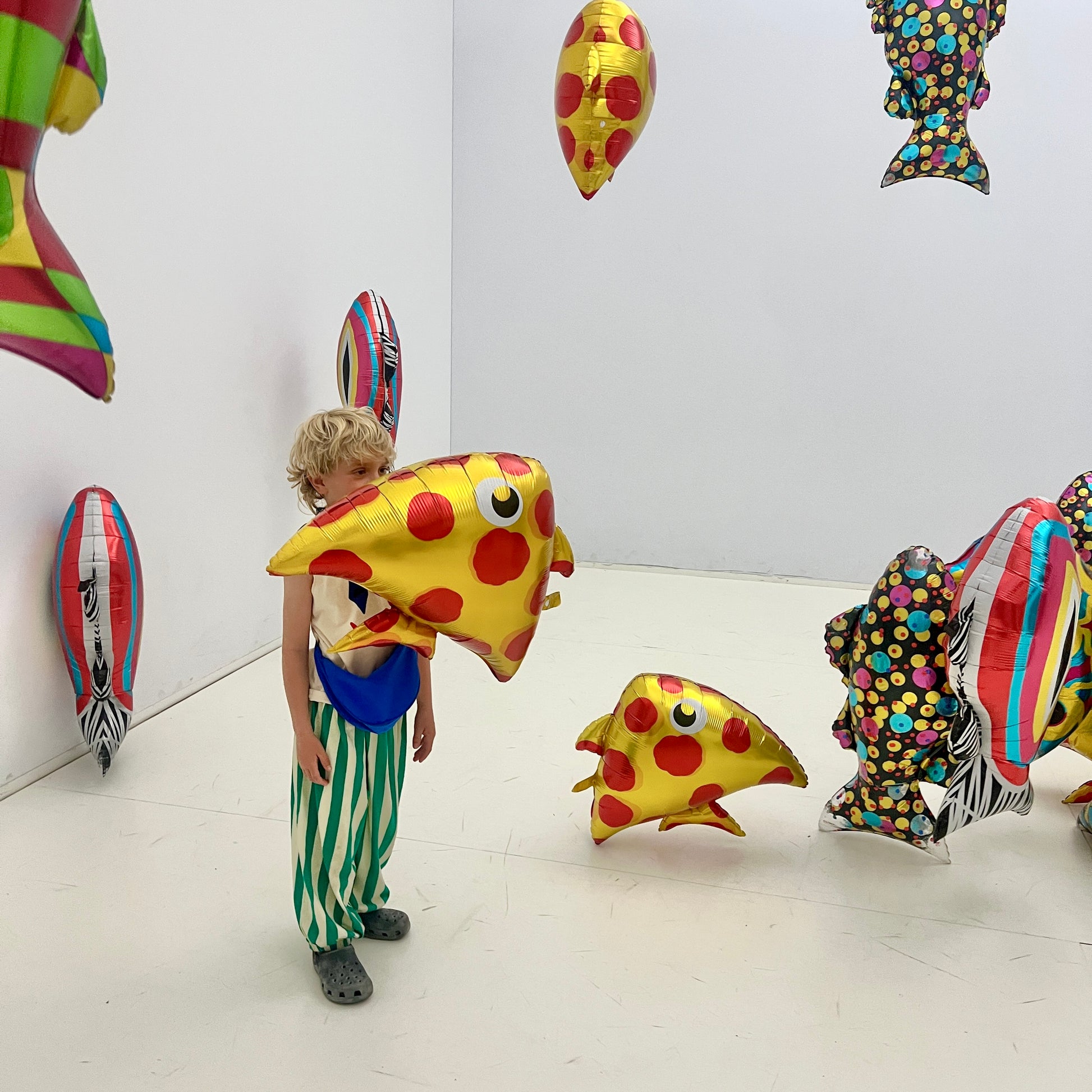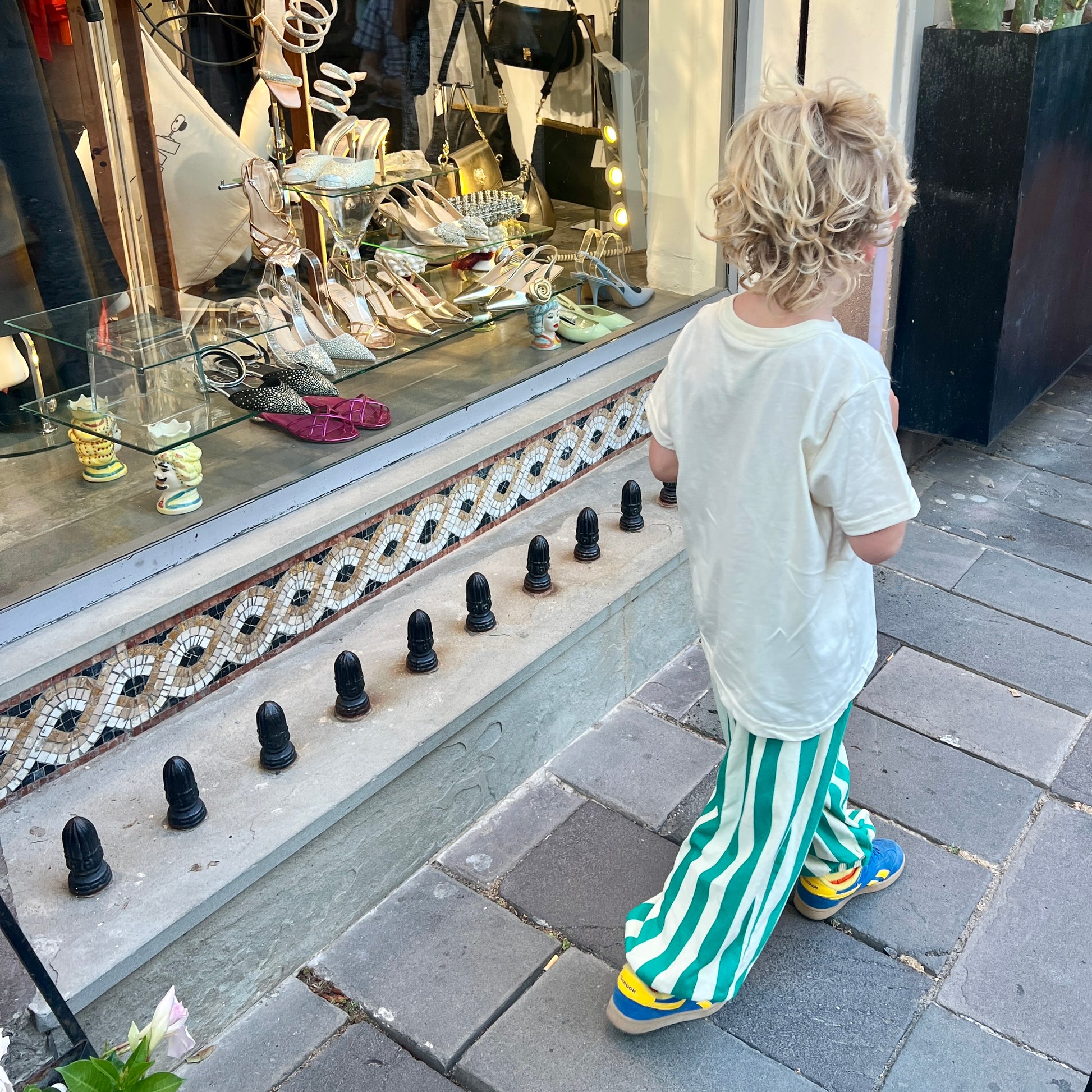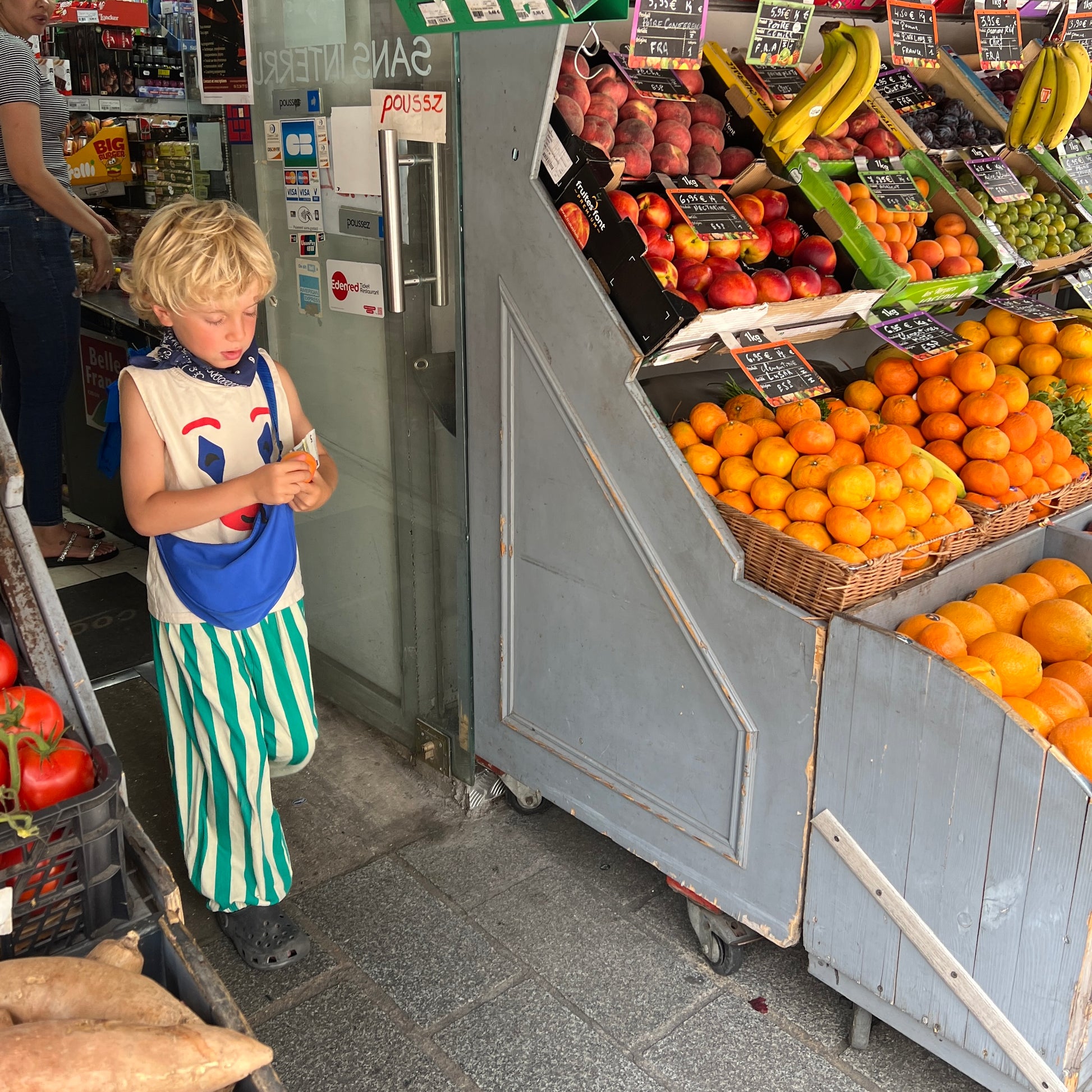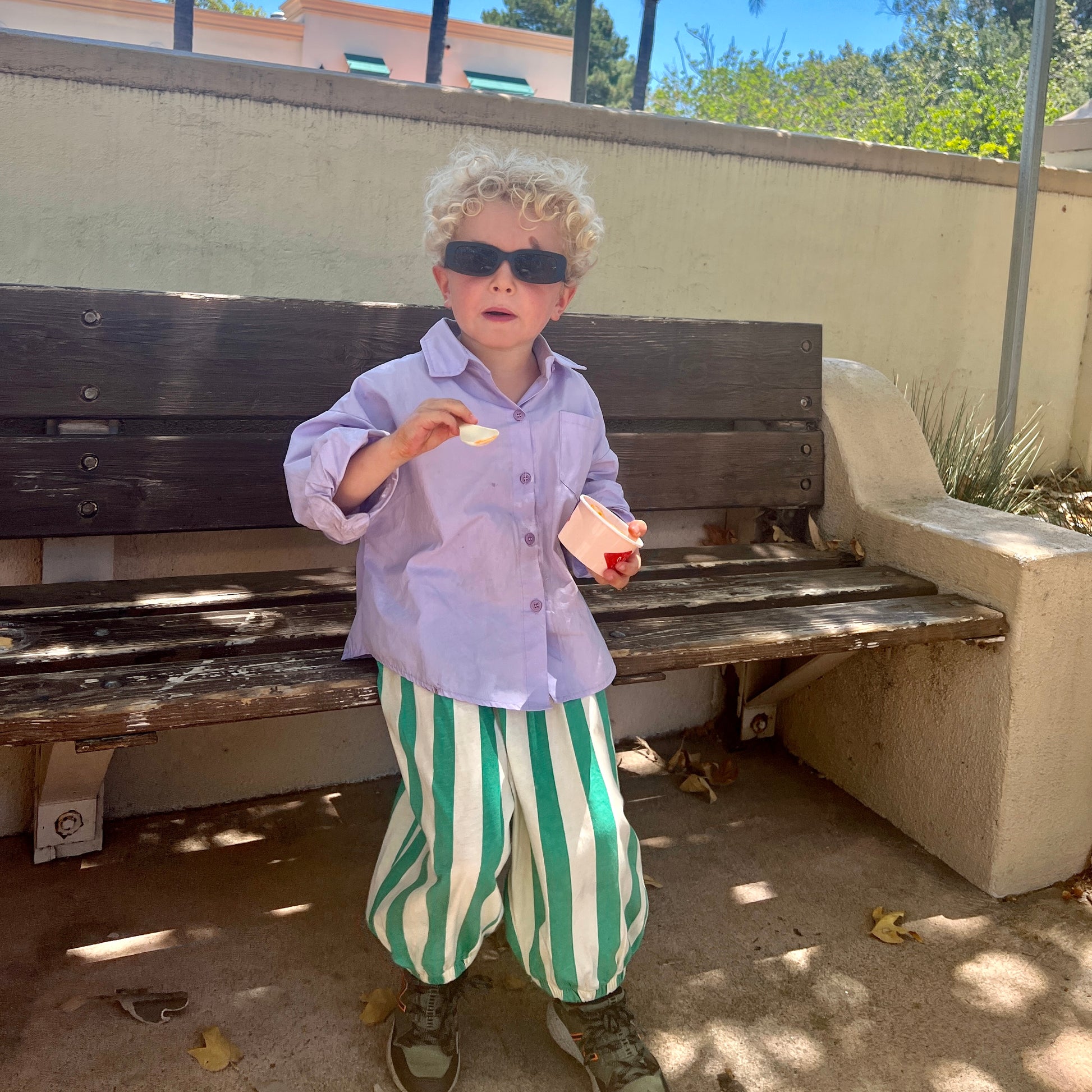 It's a party-pants vibe. Quirky, Cotton and cool- perfect for throwing on for a day at school. The pants are no-fuss, but no promises for the small wearing them.