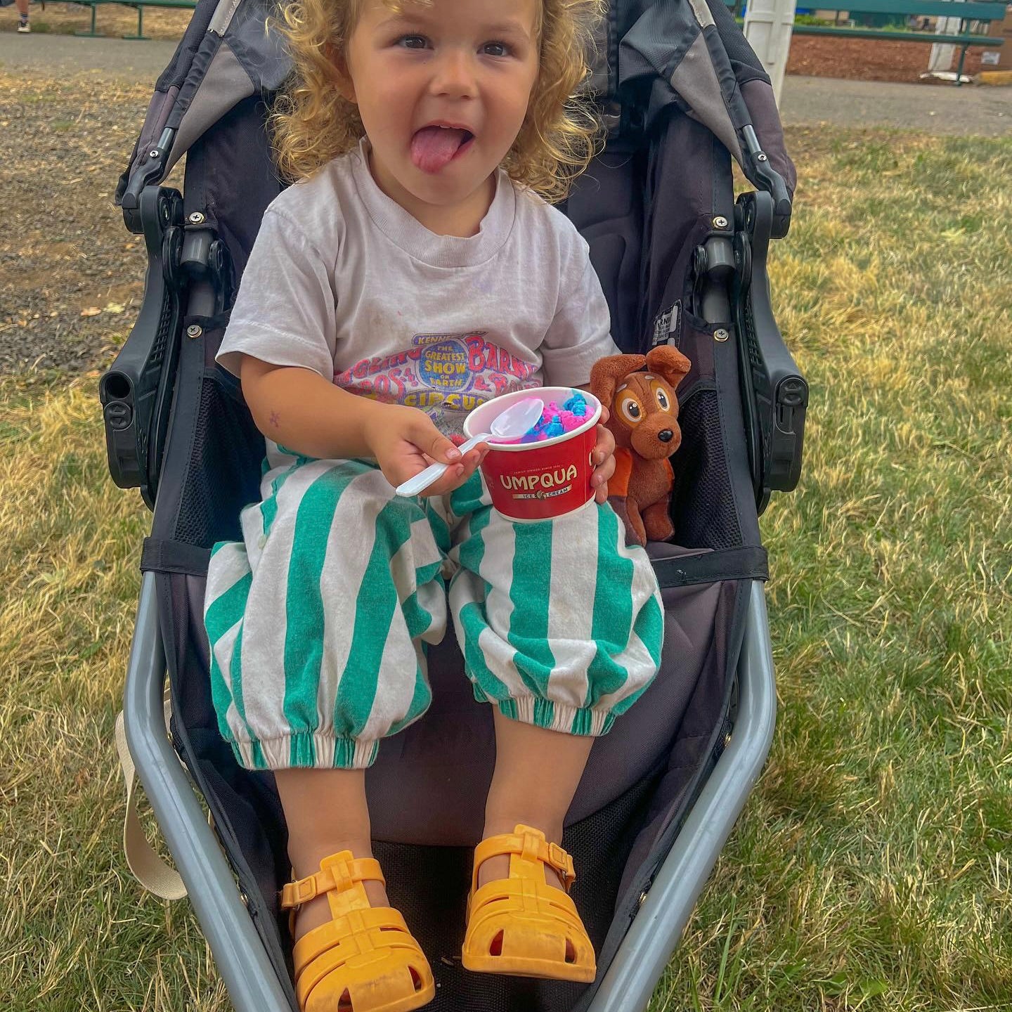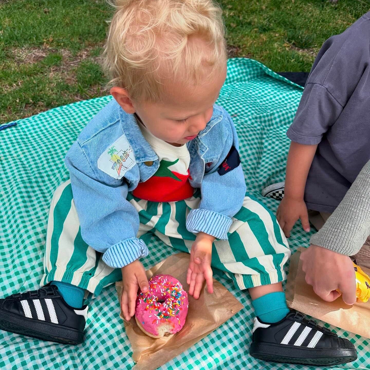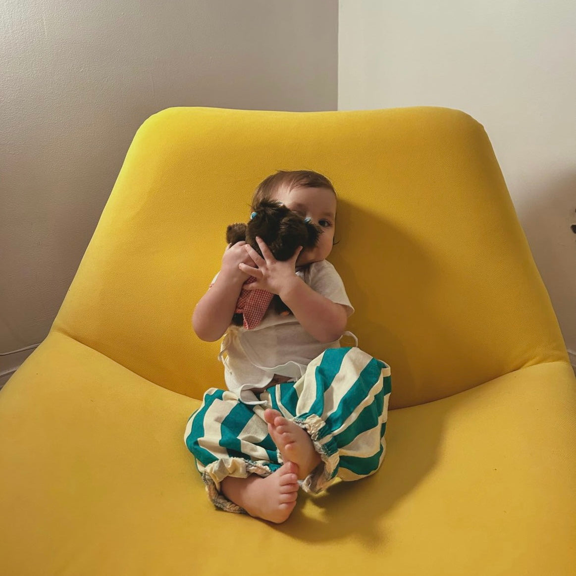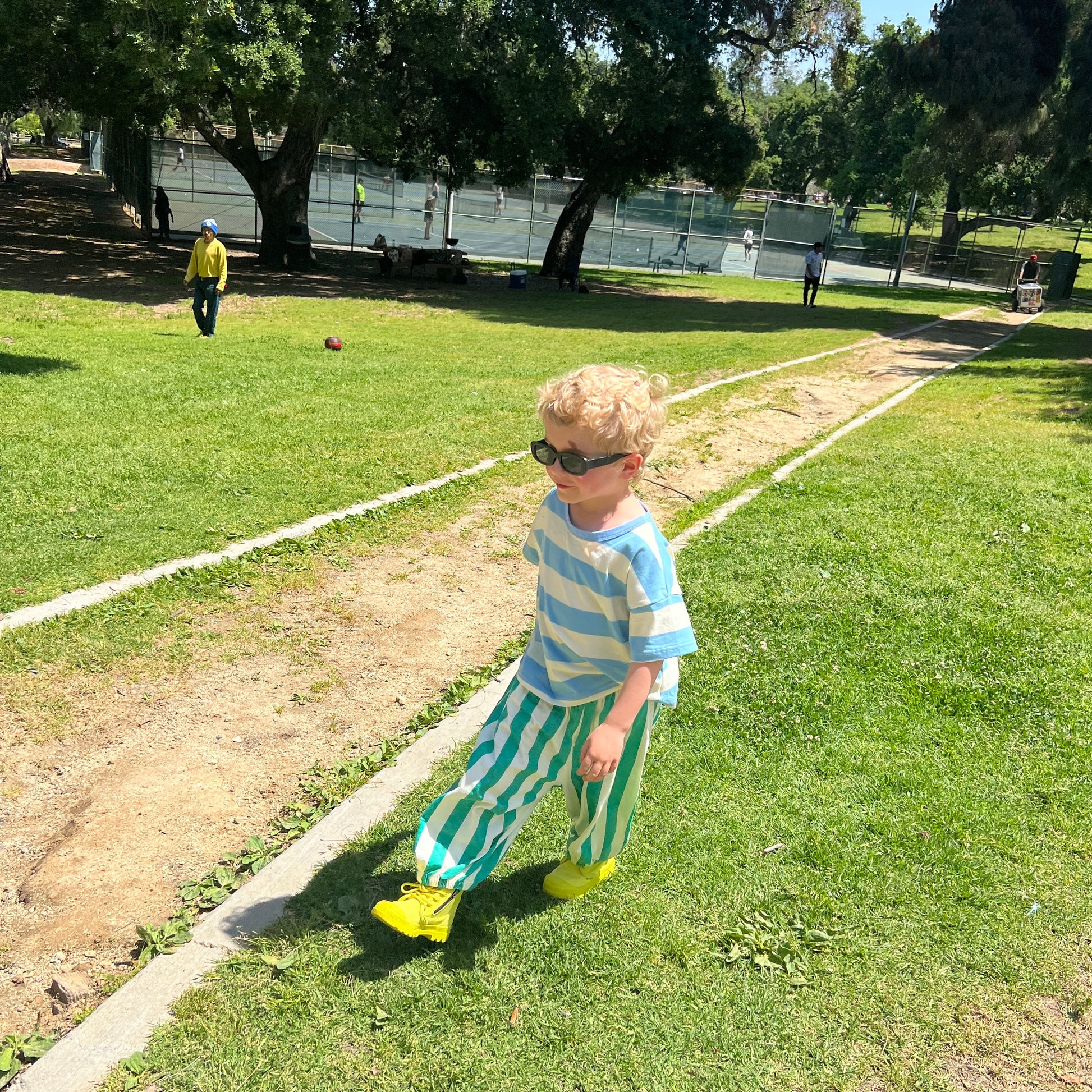 It's a party-pants vibe. Quirky, Cotton and cool- perfect for throwing on for a day at school. The pants are no-fuss, but no promises for the small wearing them.