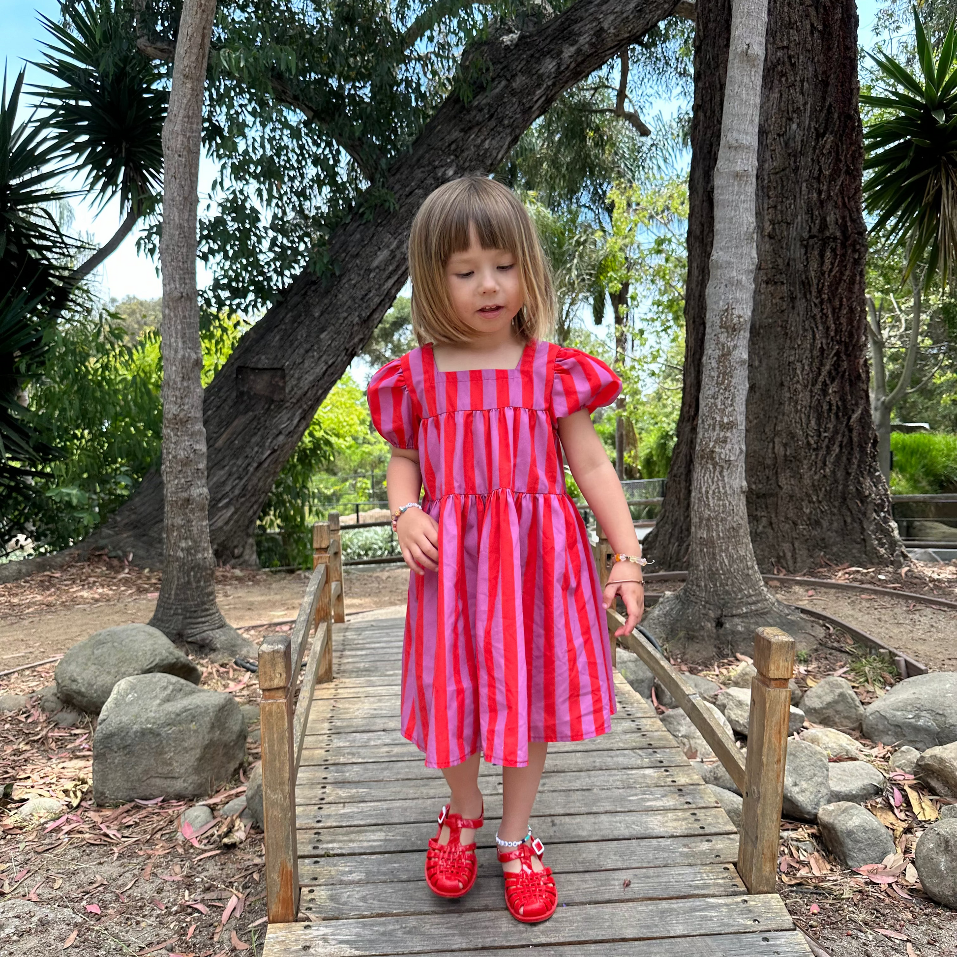 Look absolutely adorable at your next event in our Circus Stripe Dress. Perfect for any season with it's tiered design, puff sleeves, and midi length. No need to clown around when it comes to being a style icon.