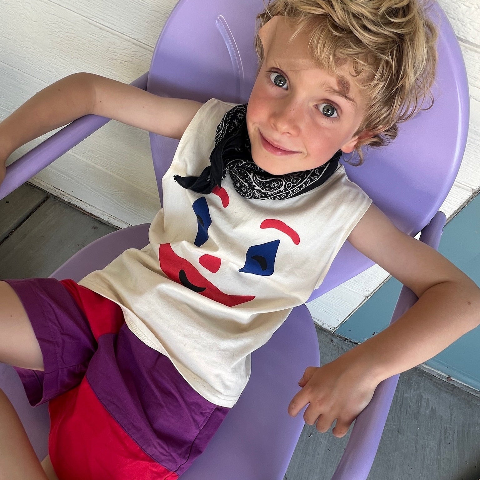 Perfect for the summertime jokester, and great for layering, this throw-on cotton tee is super soft and easy to style. We love to pair it with our red Cotton Skort or the always-iconic Carousel Stripe Pants.