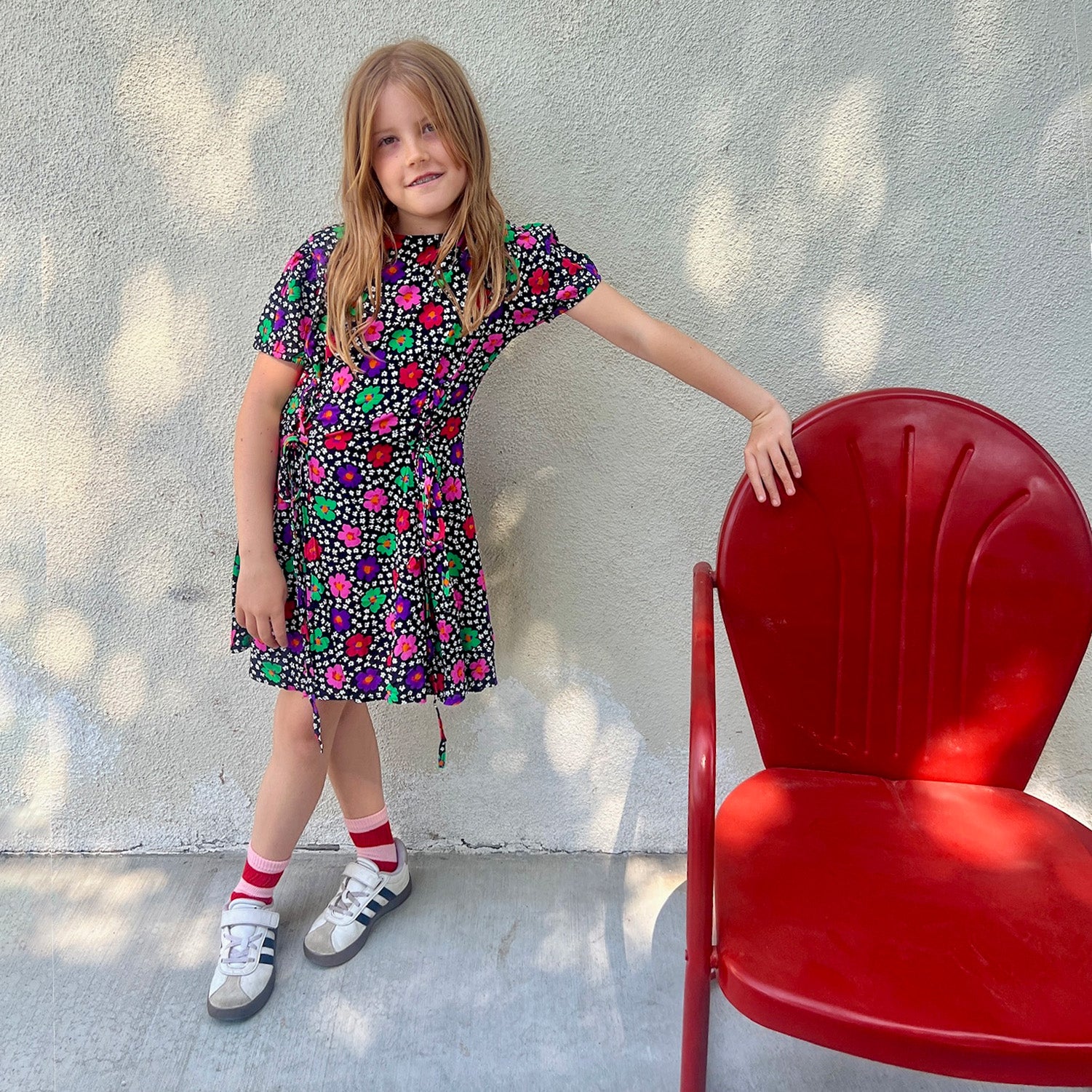 Introducing, our most iconic, most 90's dress ever: The Drew Dress. Complete with lace up details on the princess seams this is a mini-teen dream. Oh, did we mention it has a back zipper? Talk about big kid vibes, it's made from a super soft rayon challis, so it's as comfy as it is cool.