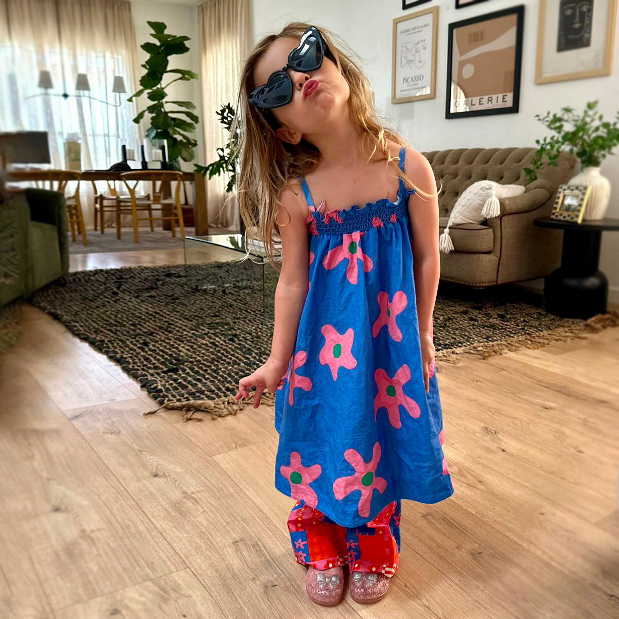 This dress is designed with longevity in mind! Straps are tacked at the inside with an extra 2" of length so it can grown taller as small does.