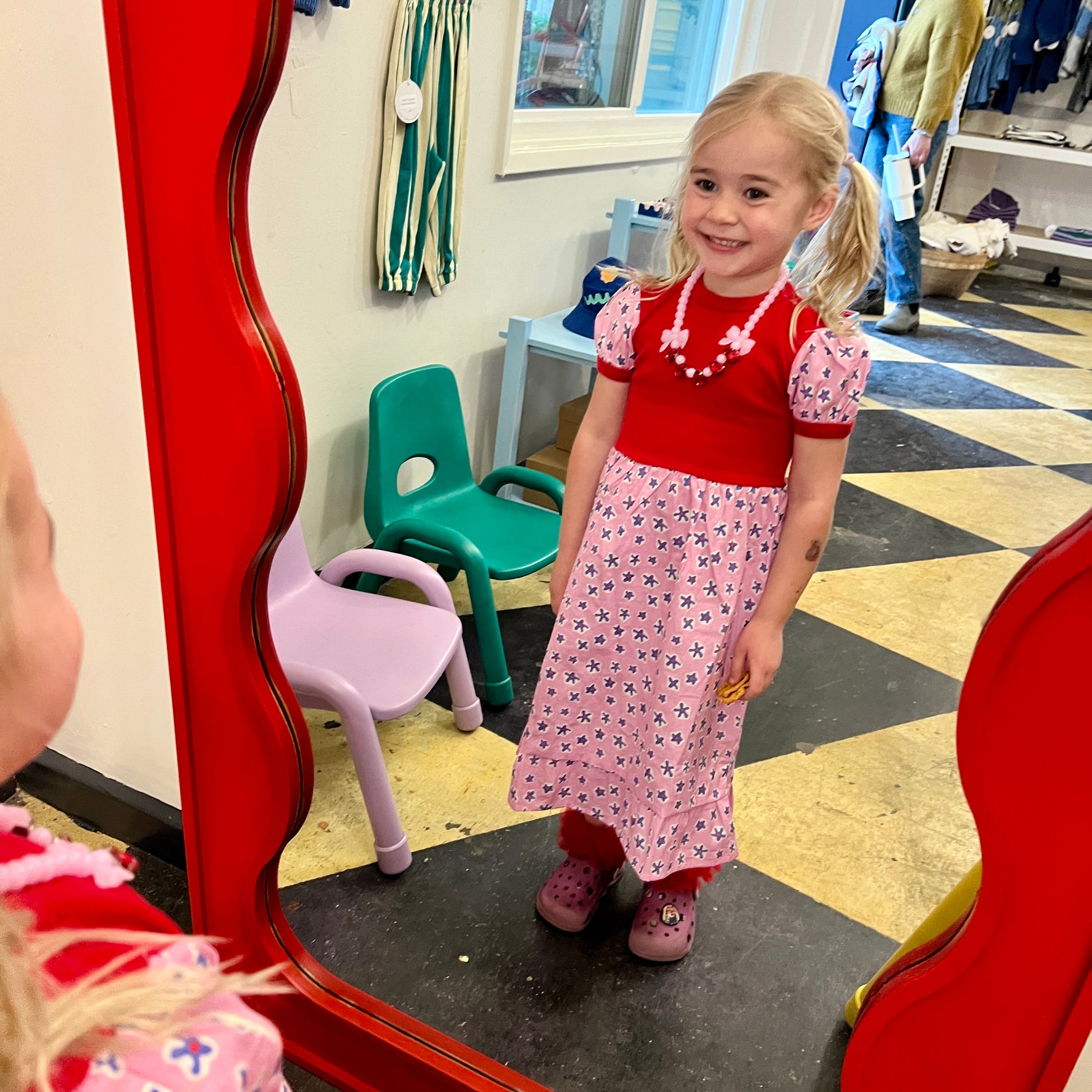 Casual, effortless, and undeniably cool. Iconically retro with a soft cotton knit bodice, and a sweet cotton woven sleeve and skirt. We love this with decked-out crocks, mini sambas, and a easy cap.