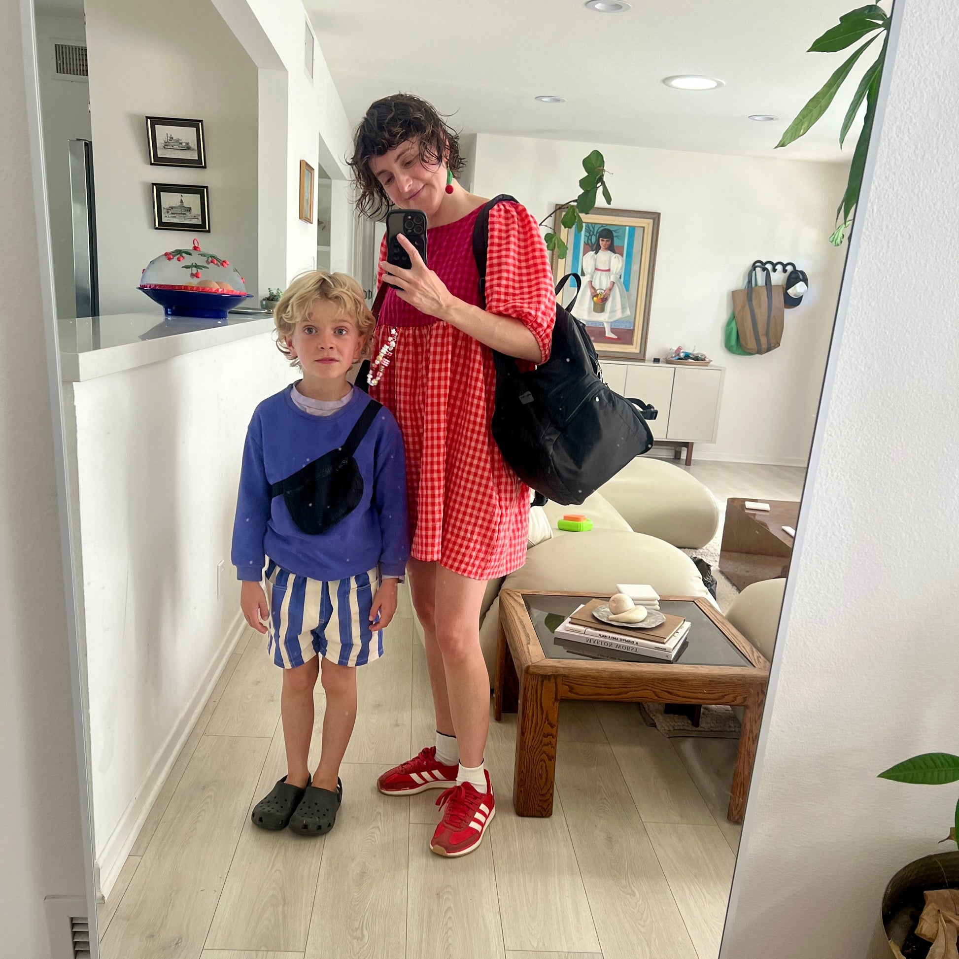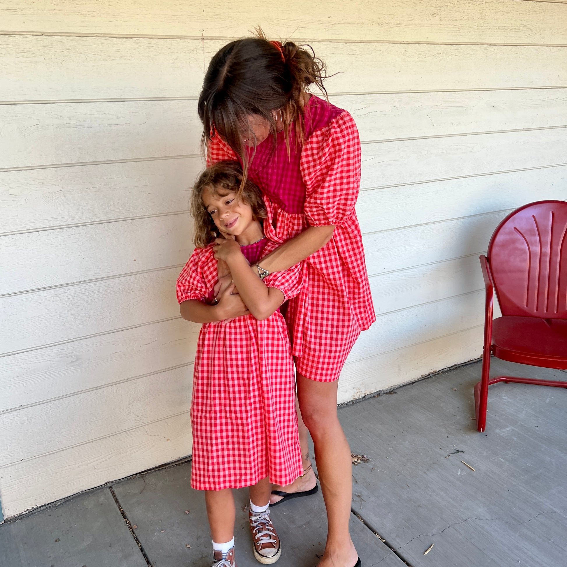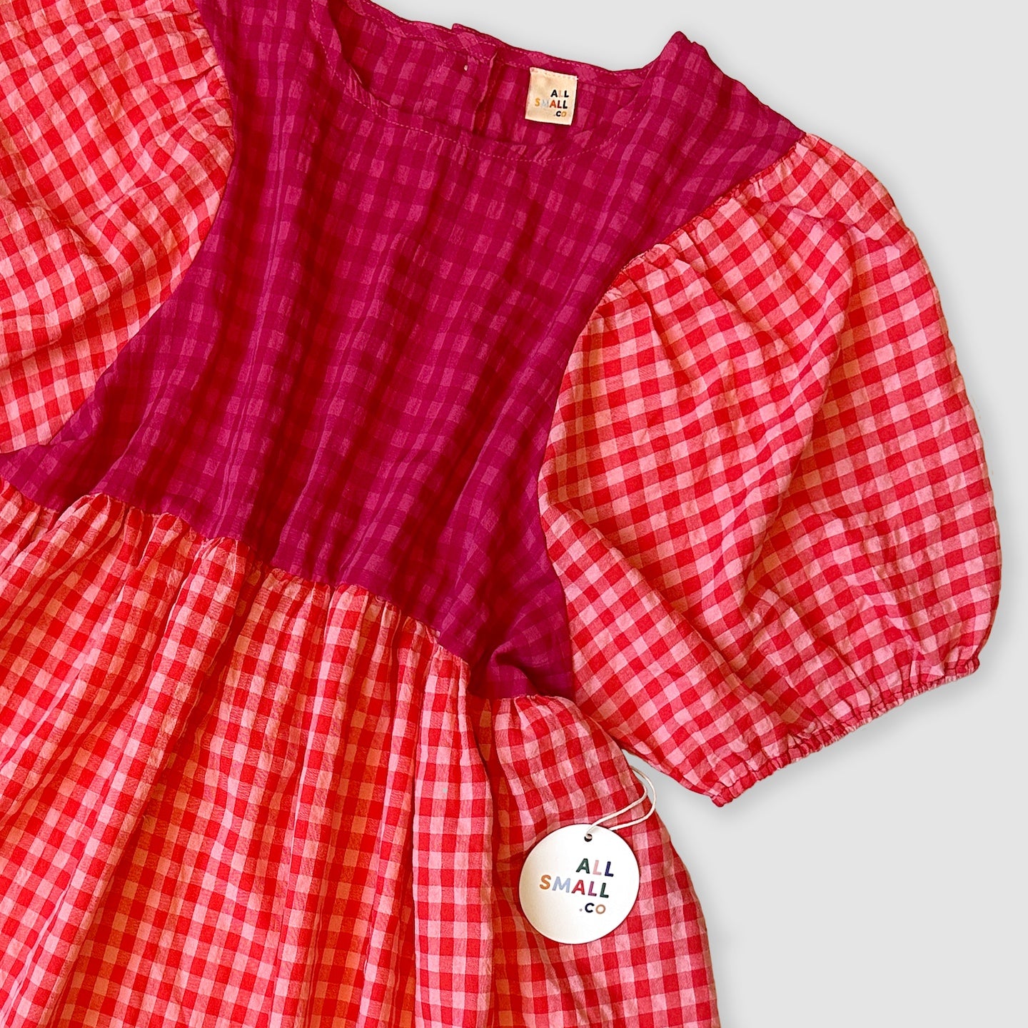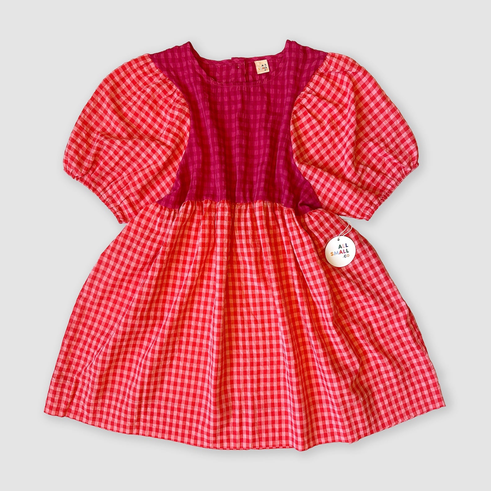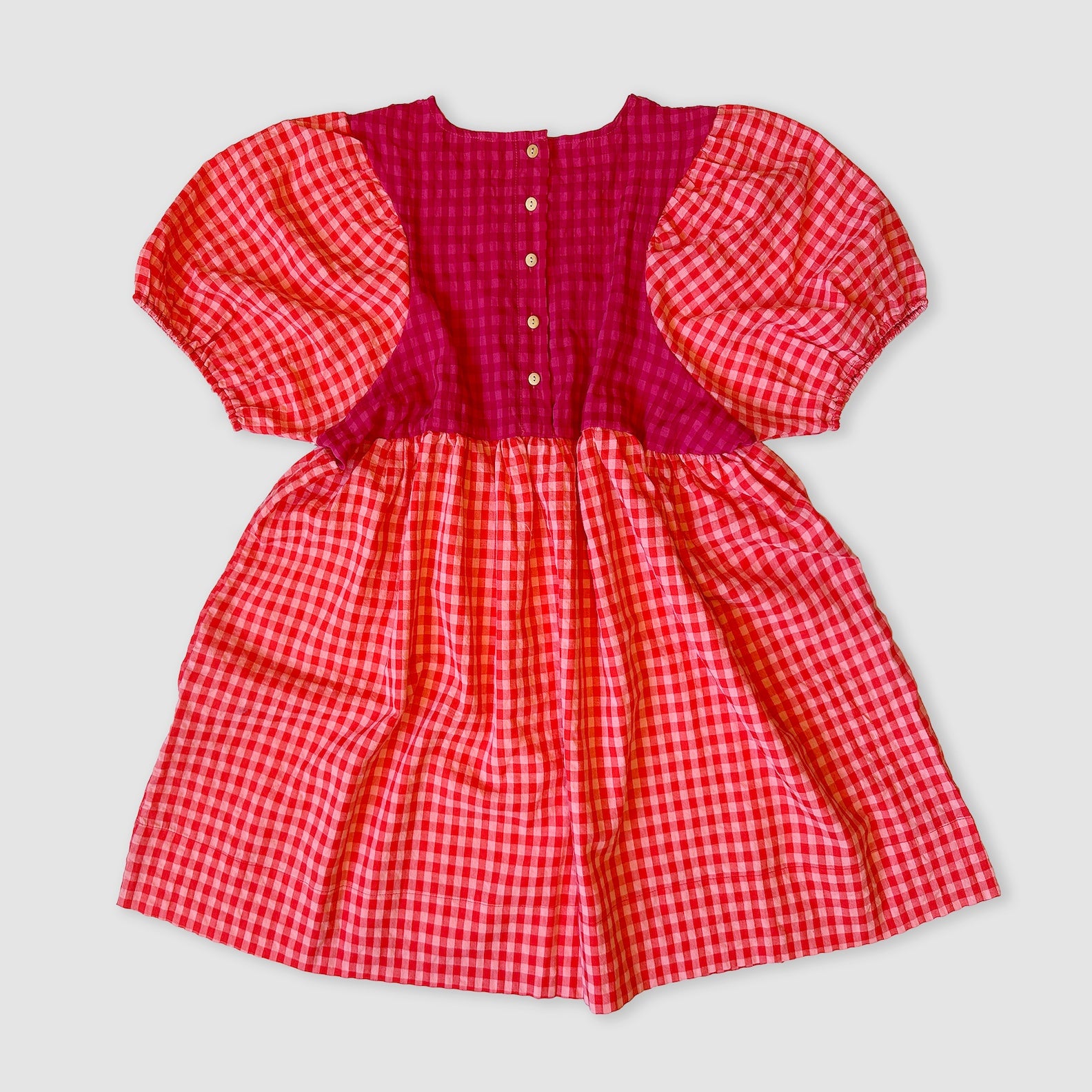 Made from a featherweight, puckered yarn-dye gingham... this dress truly has it all and fits adorably worn oversized or shrunken. We love this dress with ruffled socks, sneakers and lil bikers with some chunky kid-core beaded jewels.