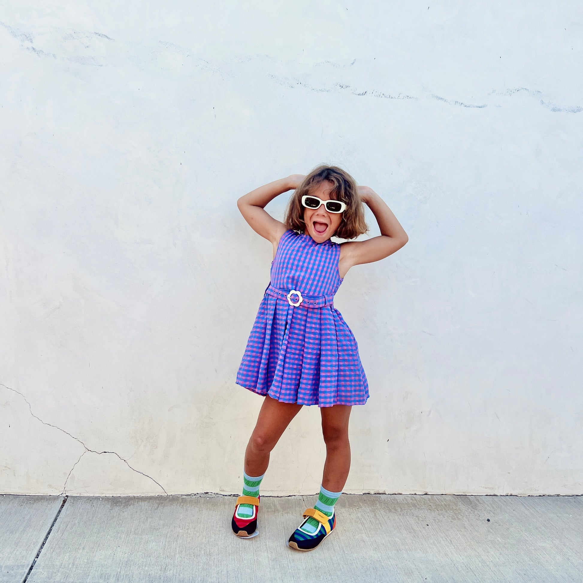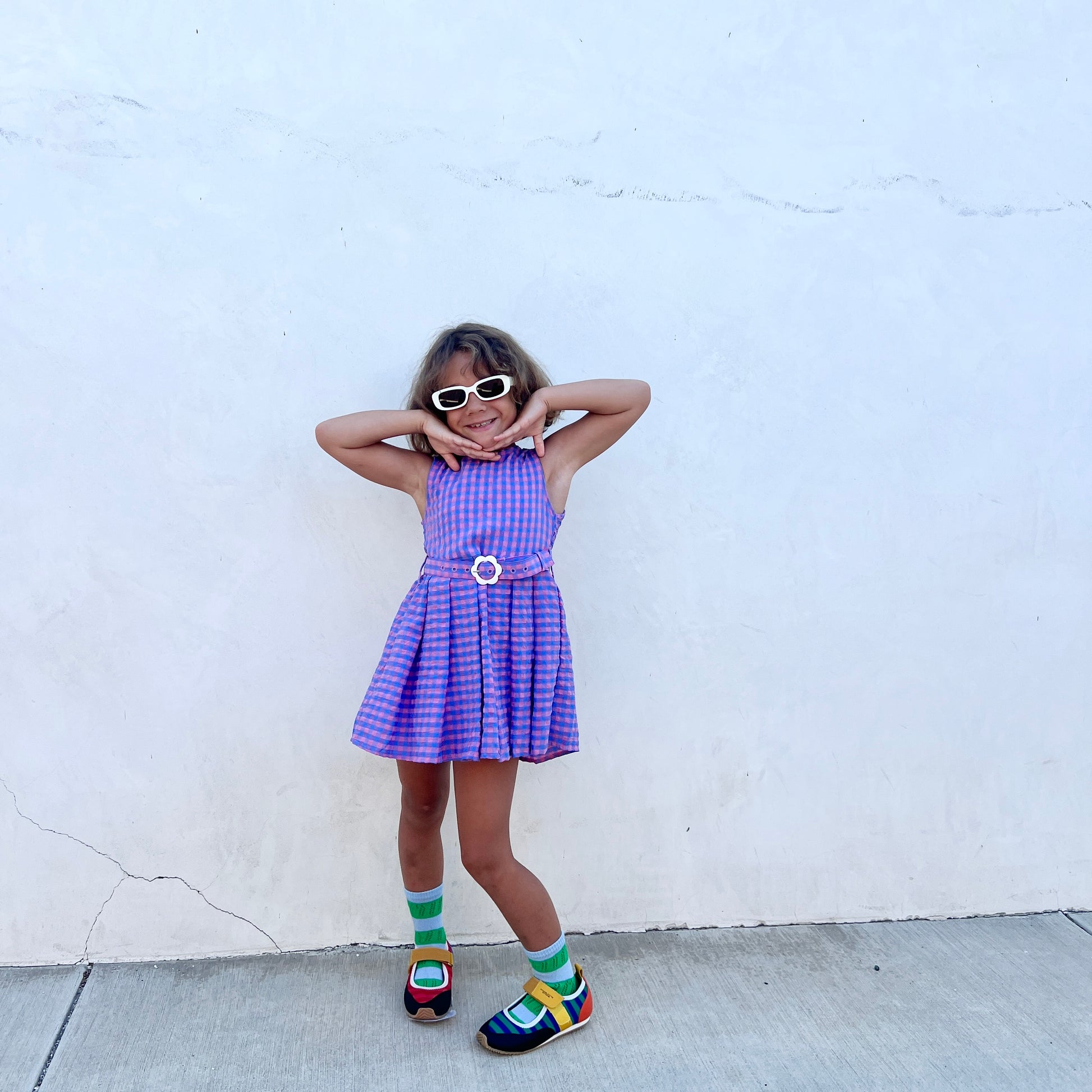 We like it with bobby socks and Mary Janes for grandma’s house… or colorful sneakers and a backpack covered in keychains for peak playground chic.