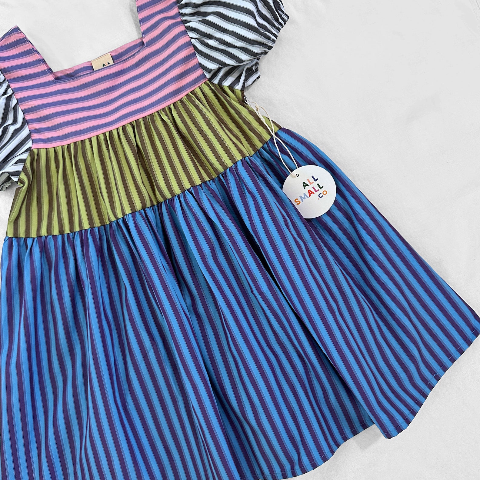 Made in a mix of yarn dyed cotton shirting, our Pencil Striped Dress is quirky and preppy at the same time. Perfect for any season with it's tiered design, puff sleeves, and midi length.