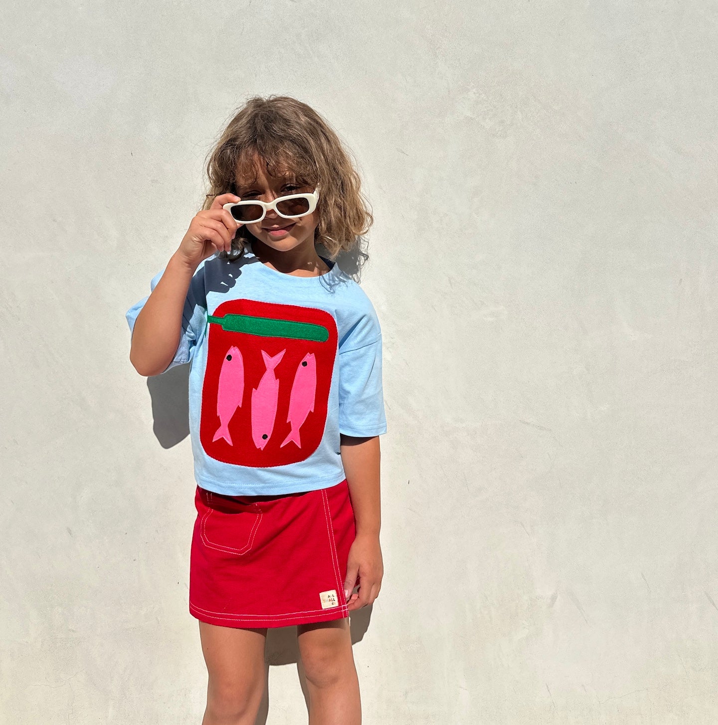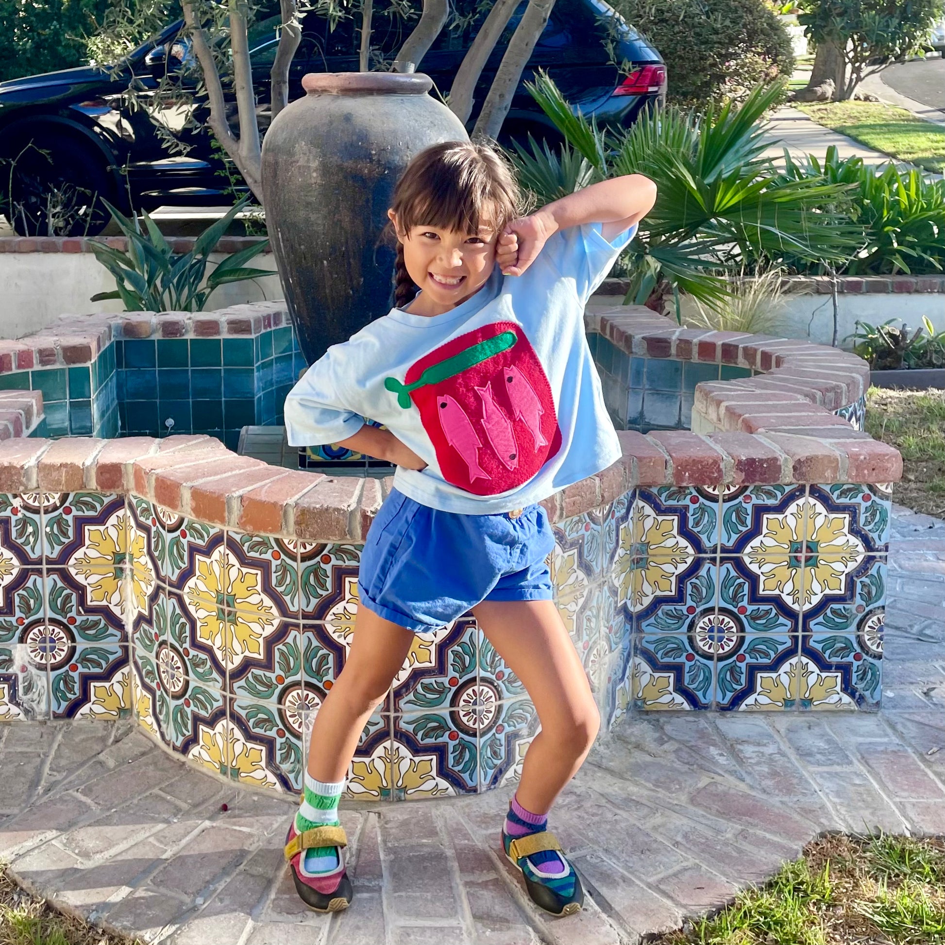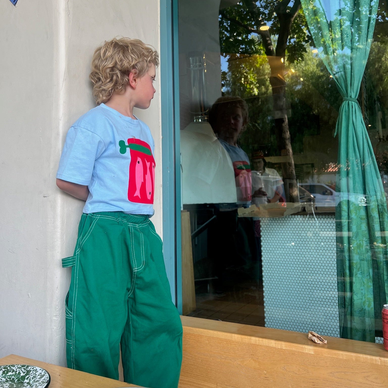 Our friends at Whimsy Ranch created this ridiculously adorable sardine embellished tee. Just like tinned fish, we love it with everything. Especially our Fisherman Stripe Pants in Blue Stripe, and our go-to Carpenter Pants in either Green or Pink. Both are chef's kiss
