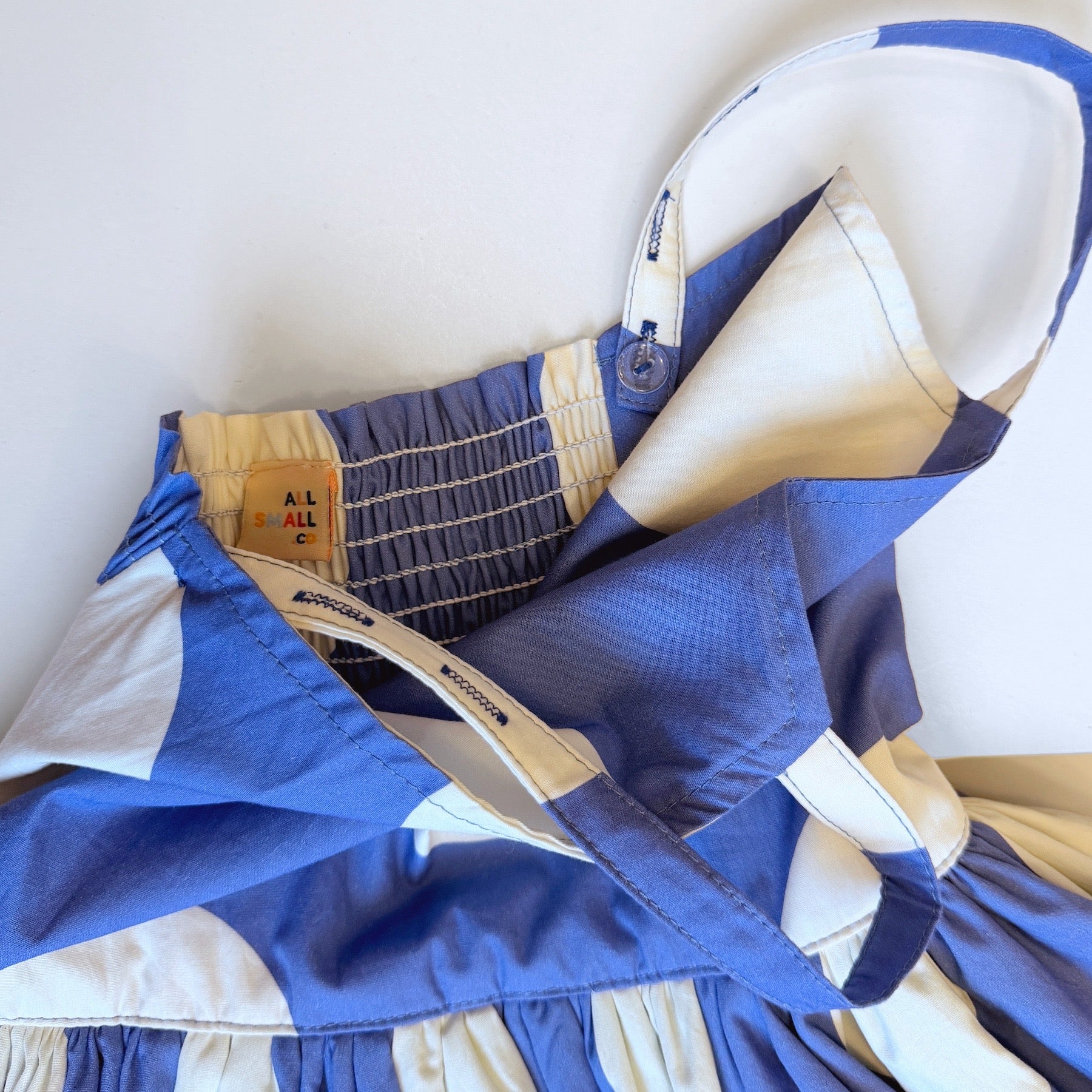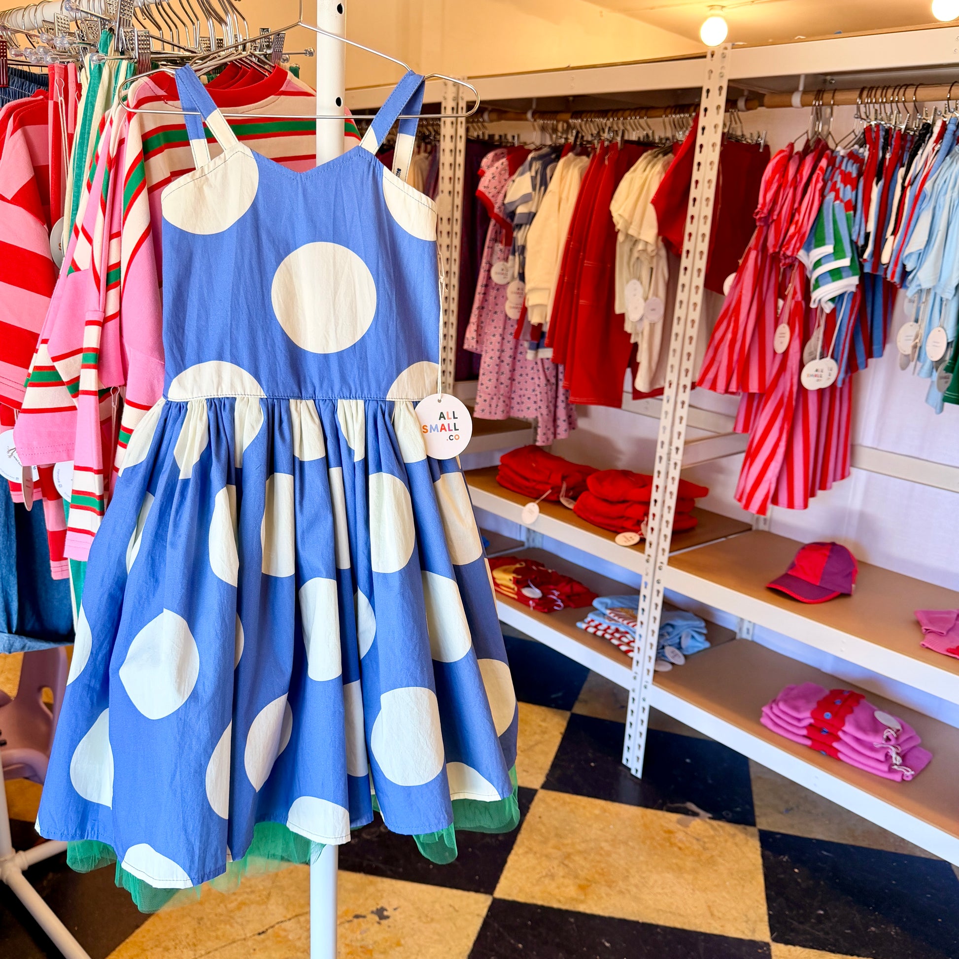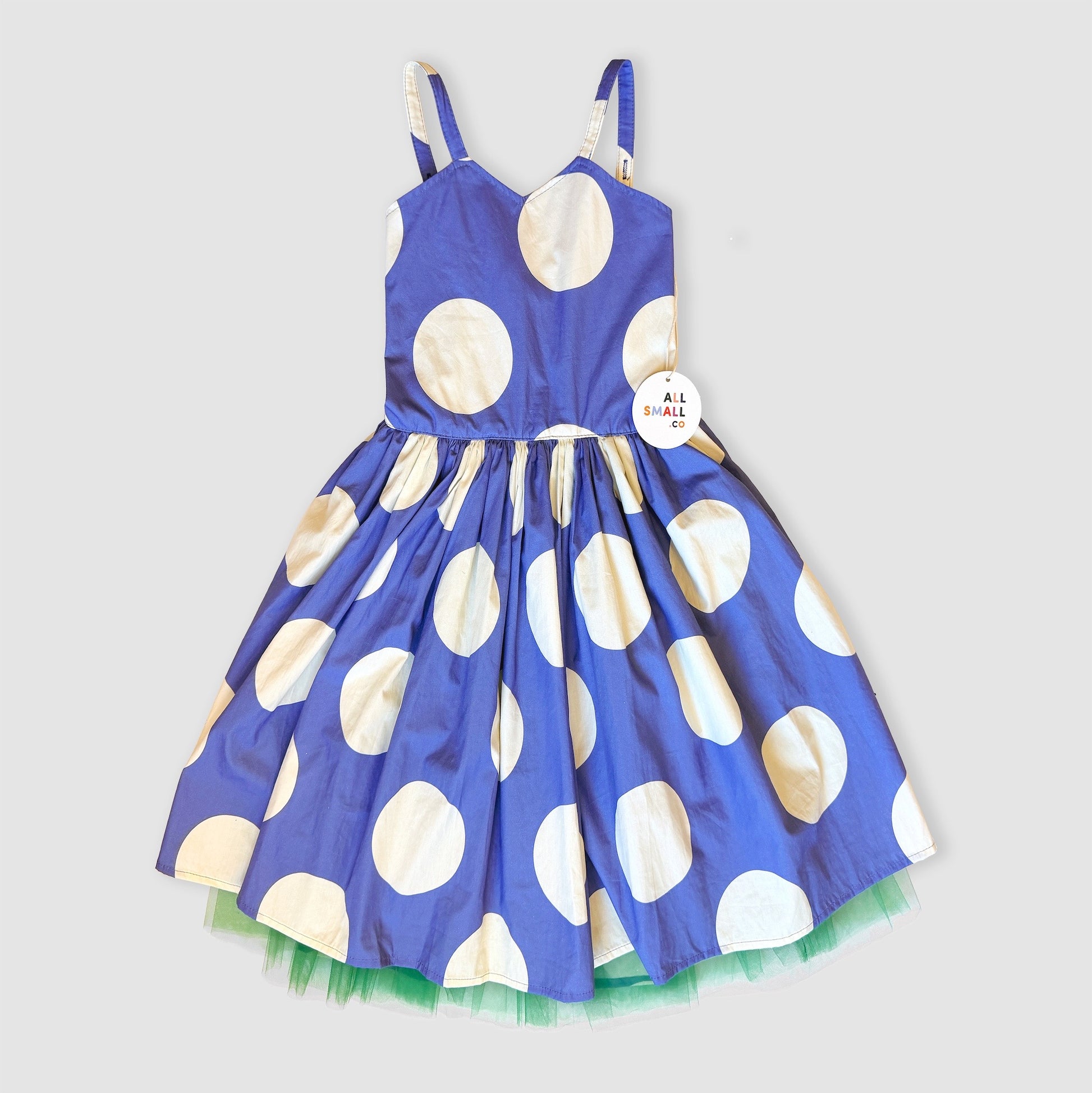 Made from 100% cotton, with cotton lining under layers of fluffy tulle. Button holes on the shoulder strap for 3 strap length adjustment.