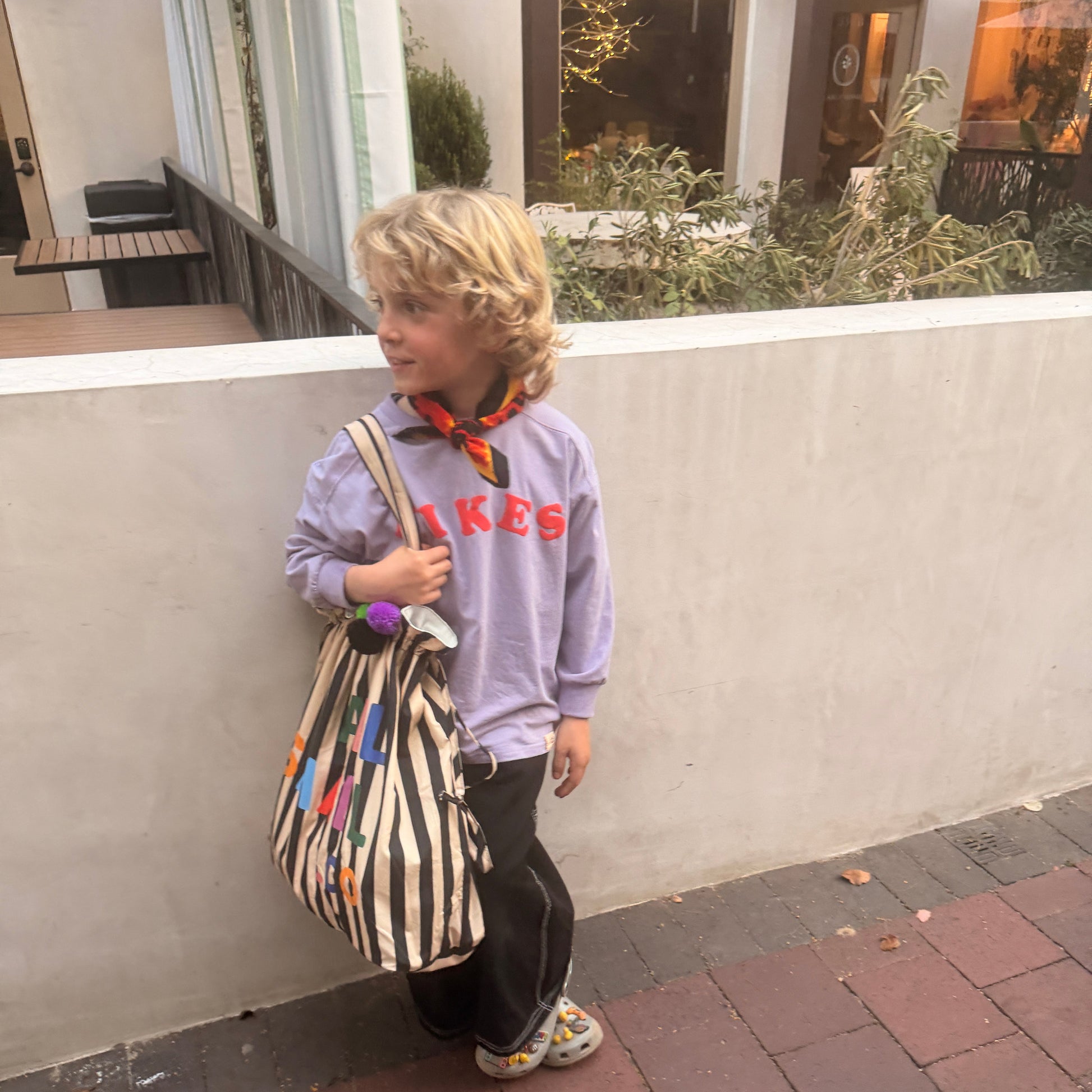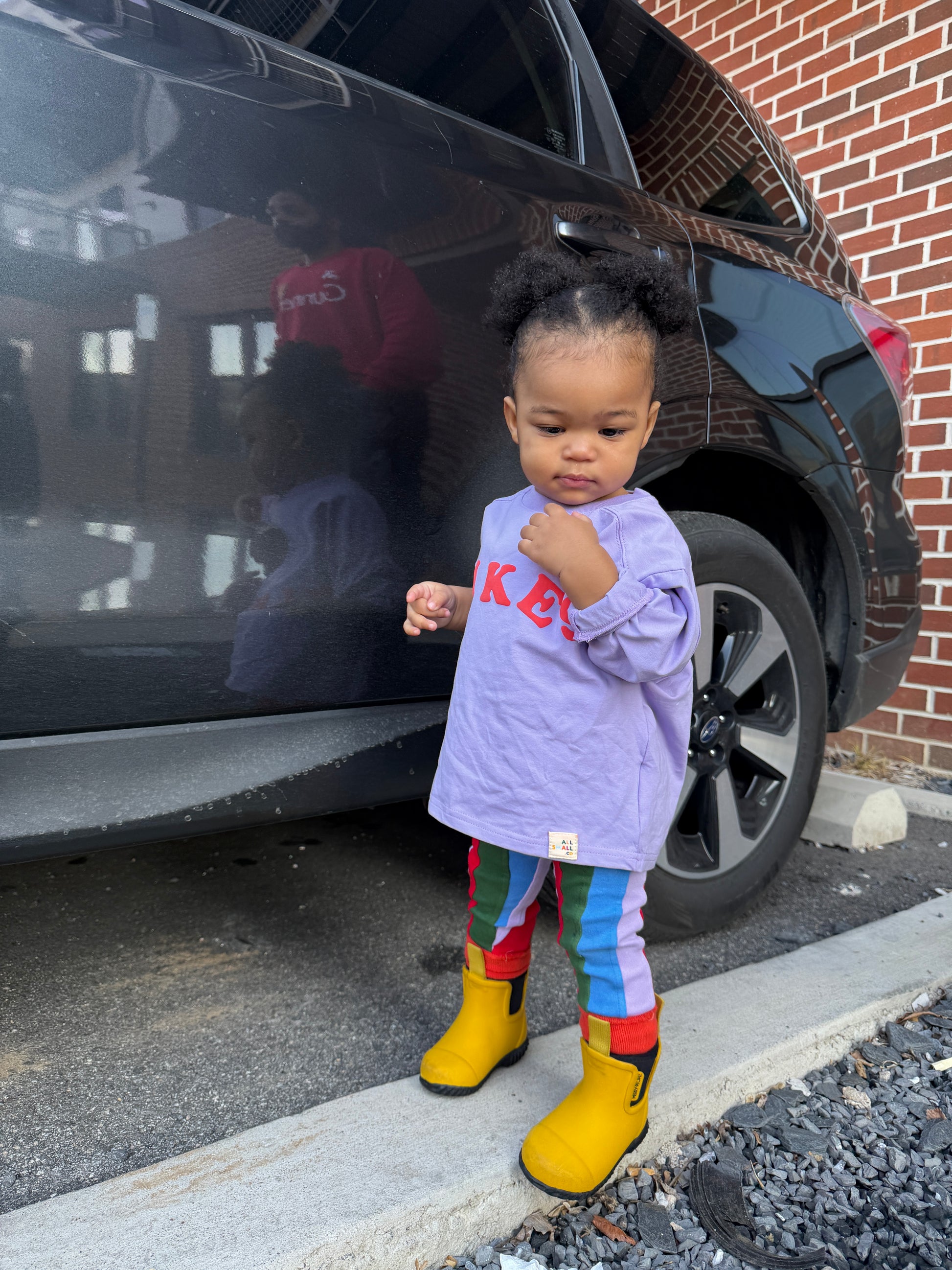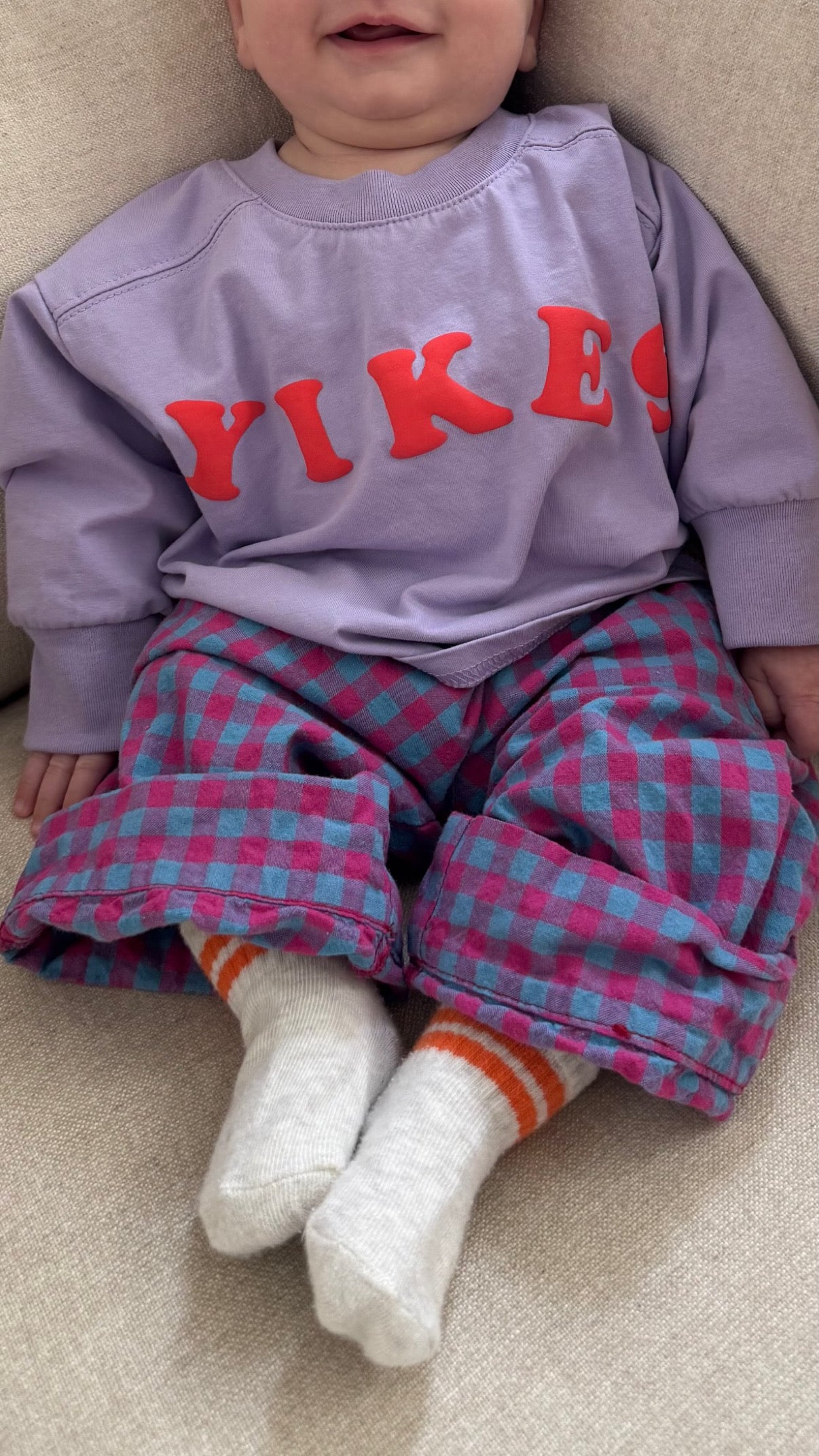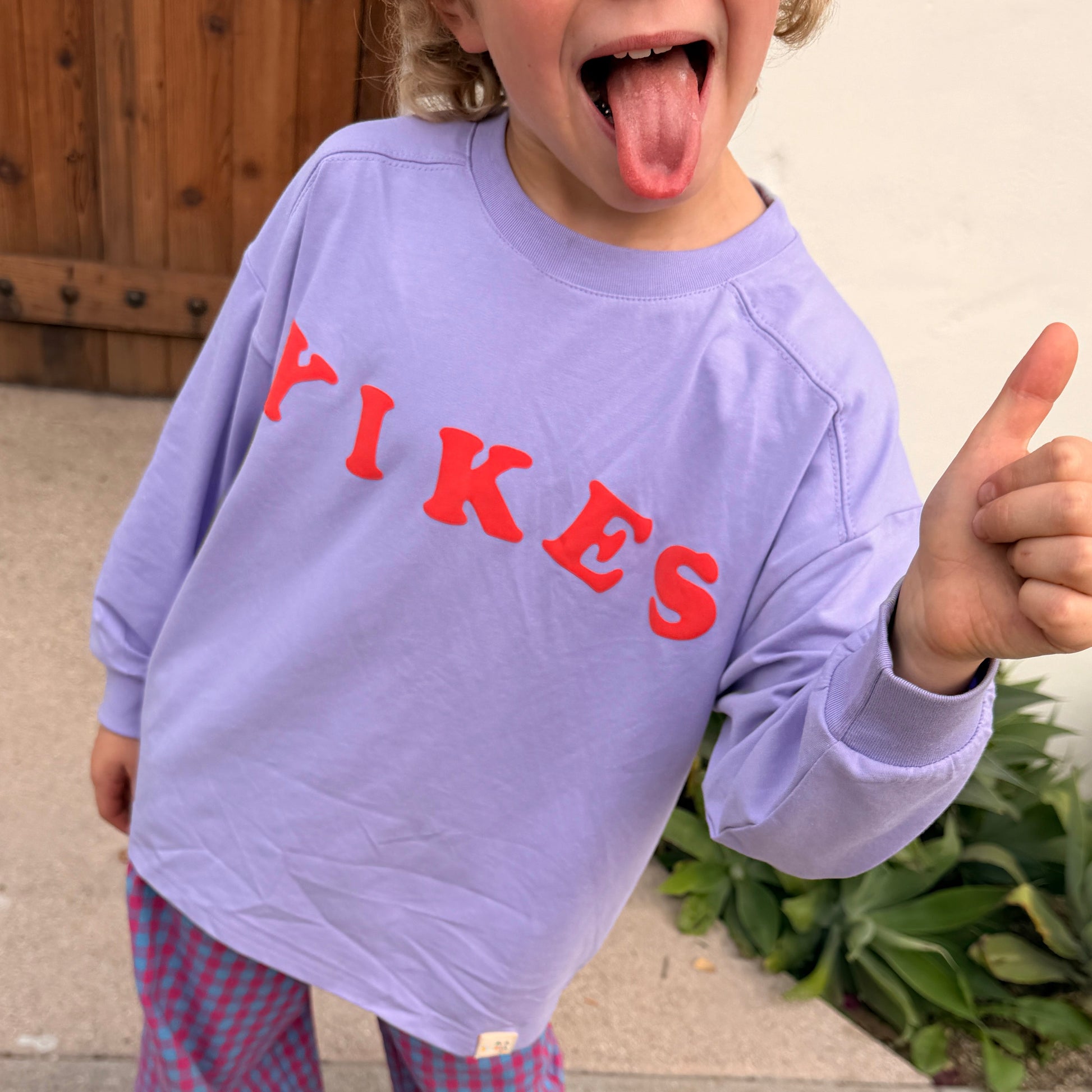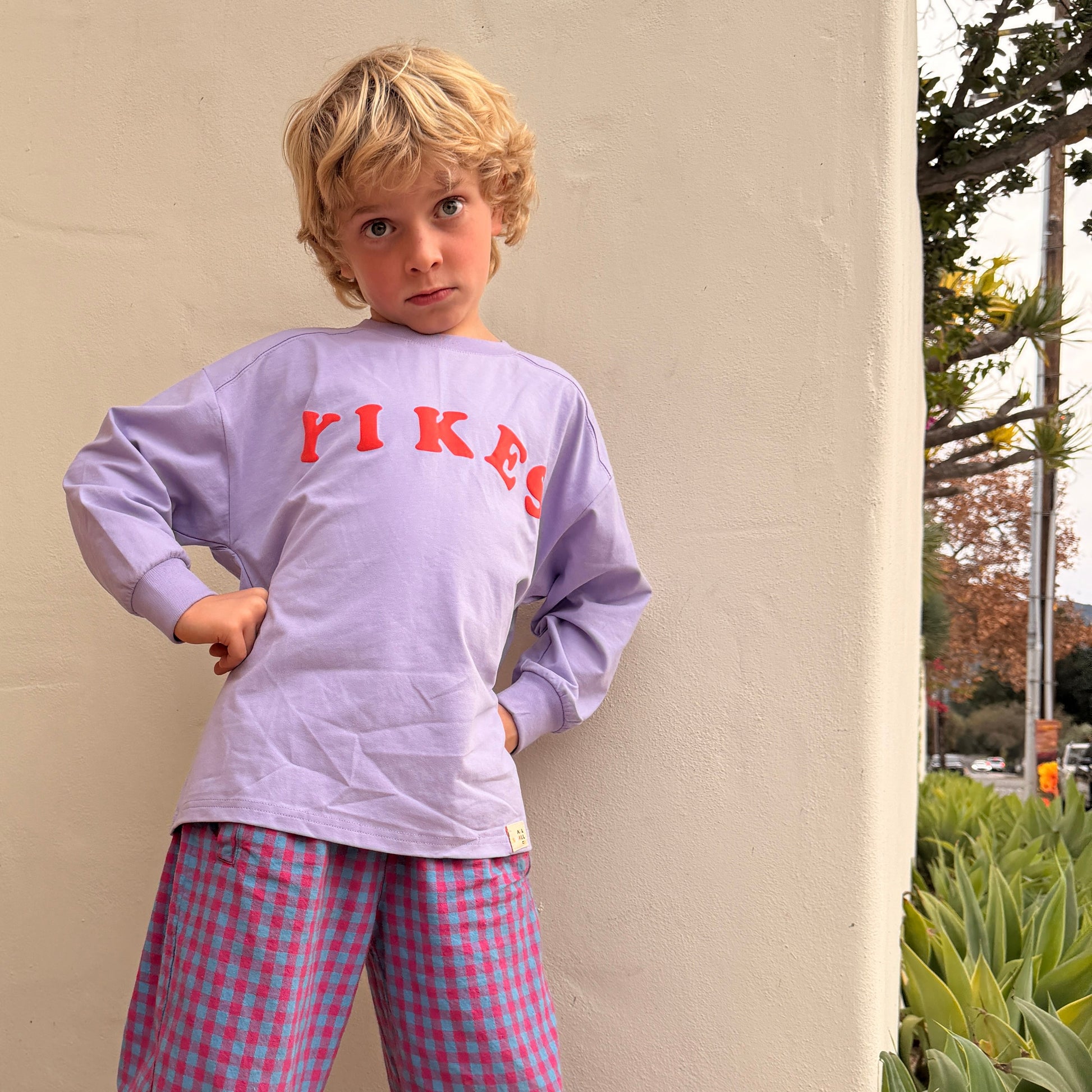 Made in buttery-soft jersey with puff paint lettering and a cool-kid slouchy fit. We love it with our Plaid Pants and a pair of untied shoes (yikes!).